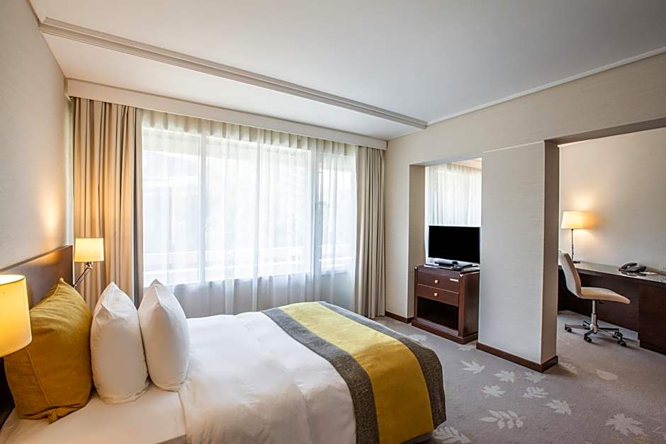 This spacious, air-conditioned suite consists of a separate living room and offers access to the Club Lounge. Amenities include 2 full HD LED TV with HDMI and VGA connection, bedside 3in1 mobile device charger, an alarm clock, a Bluetooth speaker, and an espresso machine. The bathroom comes with both a walk-in shower and a bathtub, bathrobes and free toiletries.